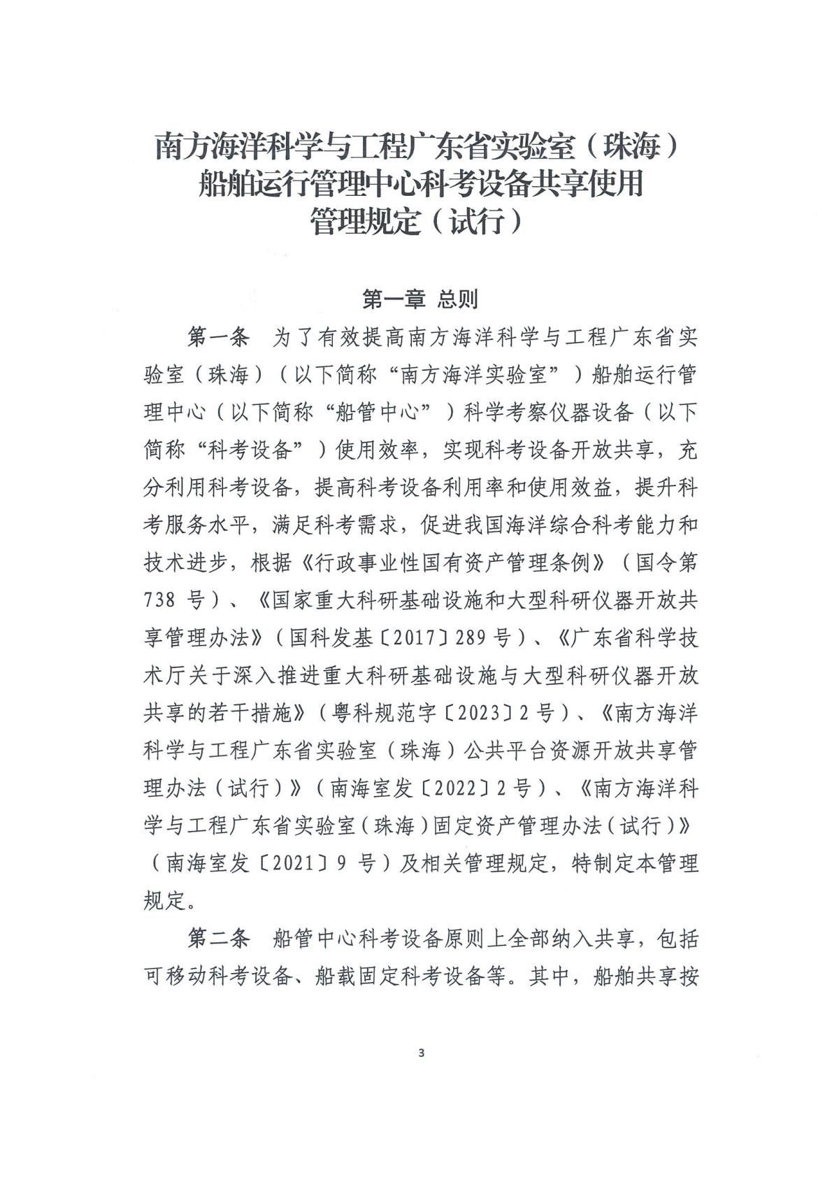 南方海洋科学与工程广东省实验室(珠海)船舶运行管理中心科考设备共享使用管理规定(试行)