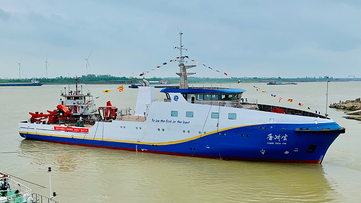 我实验室又一艘智能型船舶“香洲云”在江西九江下水
